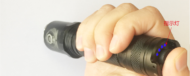 池时,战术型强光手电在关闭光源瞬间,指示灯点亮,显示电